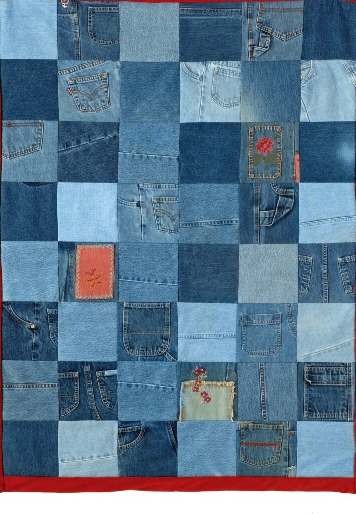 A Patchwork quilt made from old jeans – Pattern is one of the most sustainable and emotionally resonant projects a