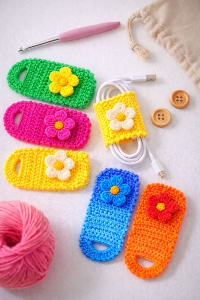 Flower Crochet Cable Organizer – Tutorial is your ultimate guide to blending functionality with aesthetic charm, ensuring your workspace remains
