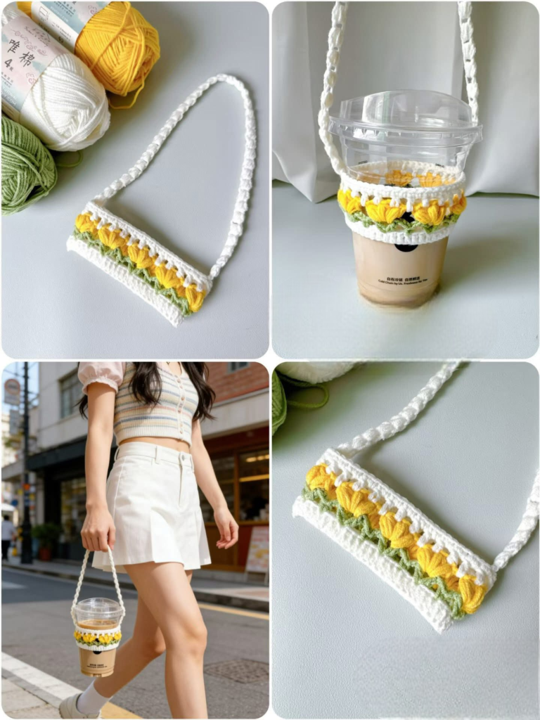 Crochet Tulip-shaped cup Holder – Tutorial is the perfect project for anyone looking to combine functionality with a touch of