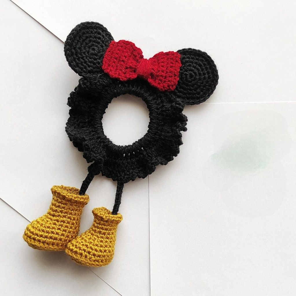 I finished this crocheted Mickey Mouse hair tie and wanted to share it with you, as this delightful project combines