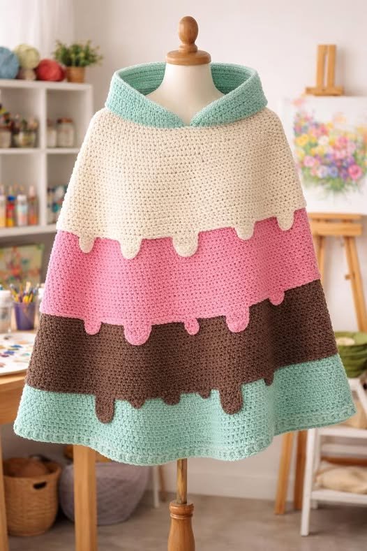 Starting a Crochet Hood and Dripping Ice Cream Print – Tutorial is the perfect way to merge the cozy world