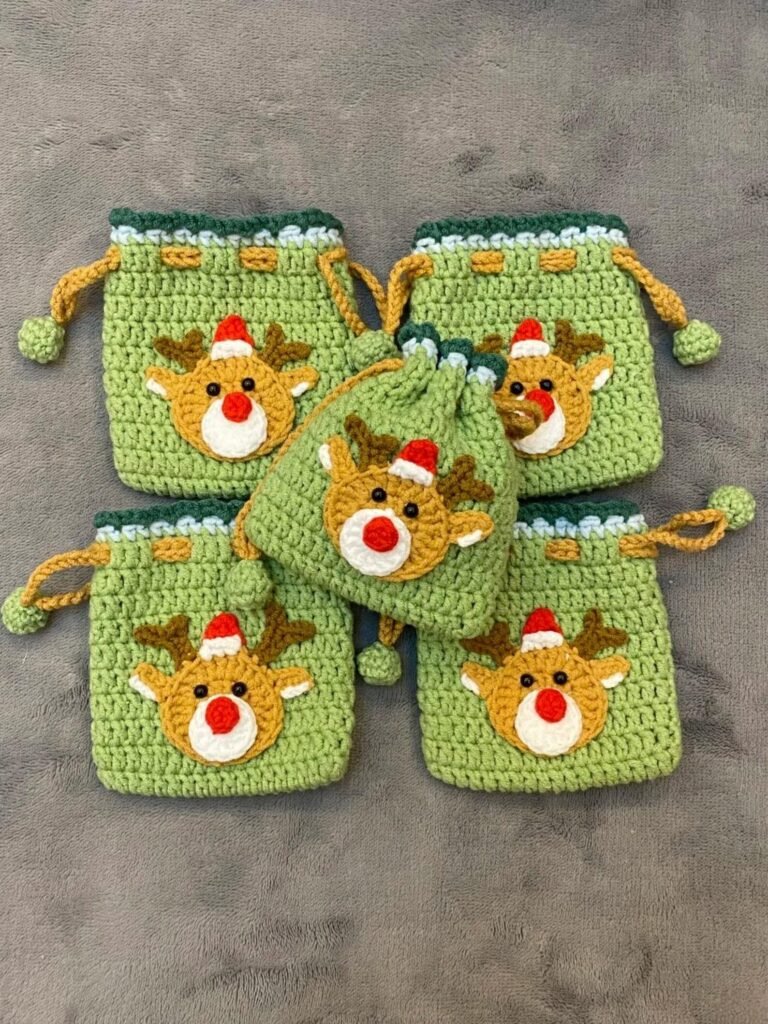 Crocheted bag with drawstring in the shape of a reindeer – Pattern projects are becoming increasingly popular among crafters who