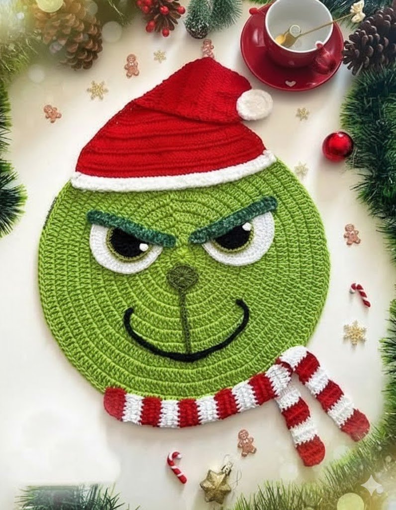 Grinch crochet placemat – Pattern projects have become a fun and festive way to add personality and handmade charm to