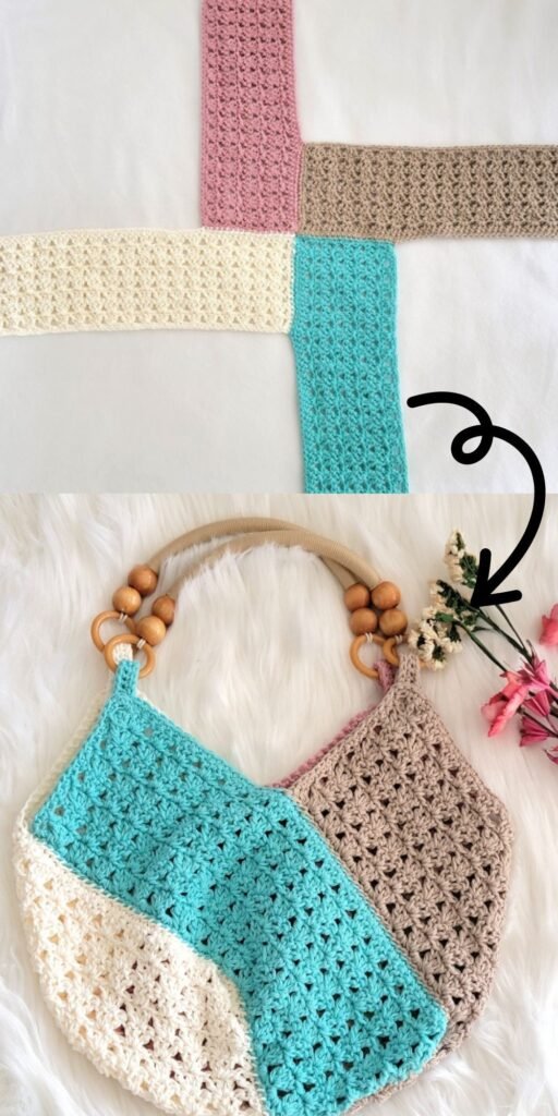 If you’re looking for a quick and stylish crochet project, the Easy Crochet Bag from 4 Rectangles, also known as