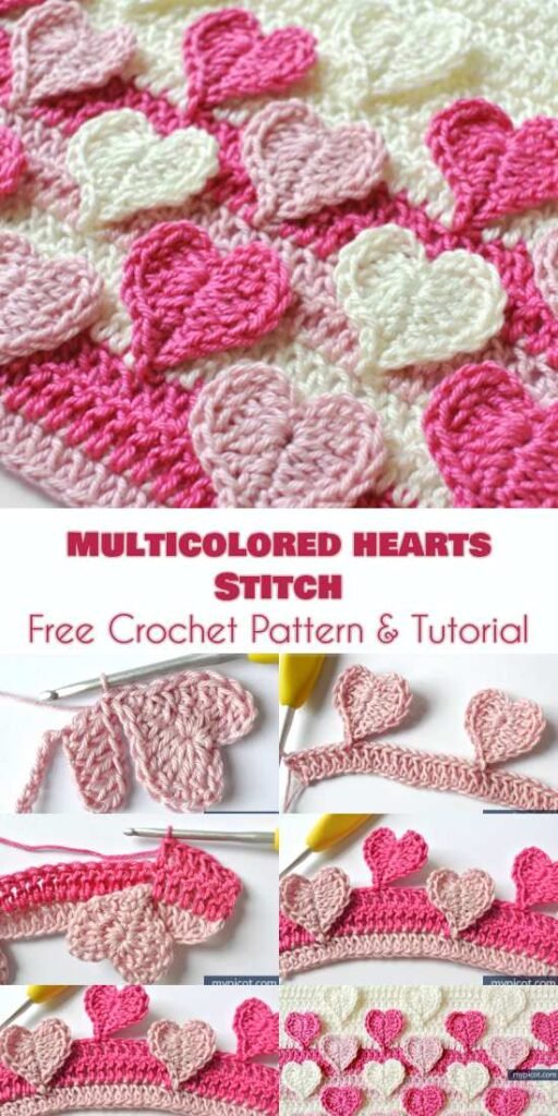 The Multicolored Hearts Stitch Crochet is a beautiful and vibrant technique that allows crocheters to add color and texture to