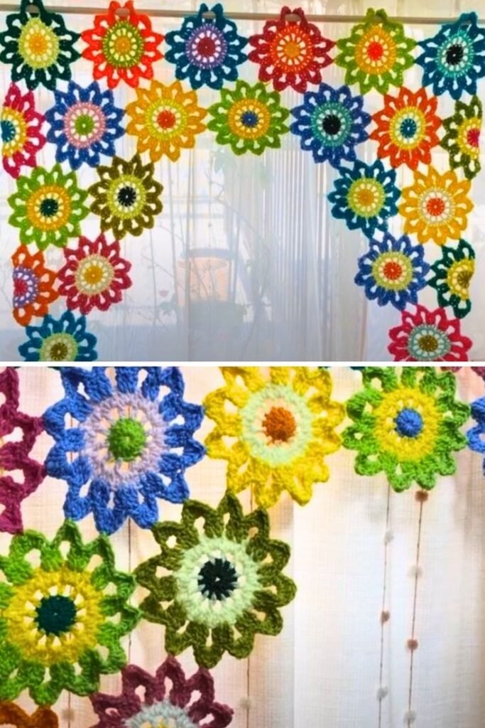 If you’re looking to bring a touch of handmade elegance and natural beauty into your home, a crochet flower curtain