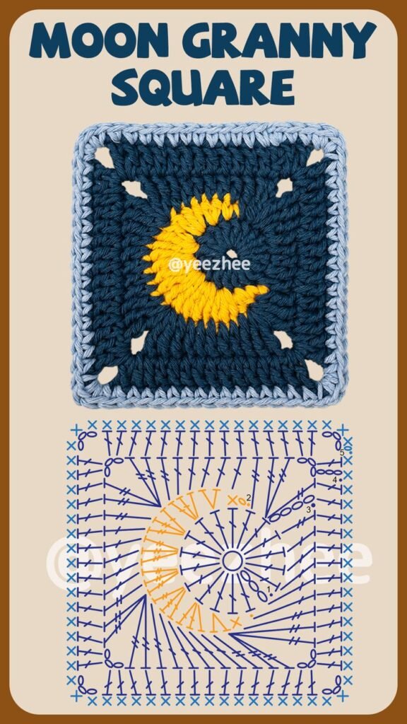 The Moon Granny Square Crochet – Pattern is a charming and creative design that can add a celestial touch to
