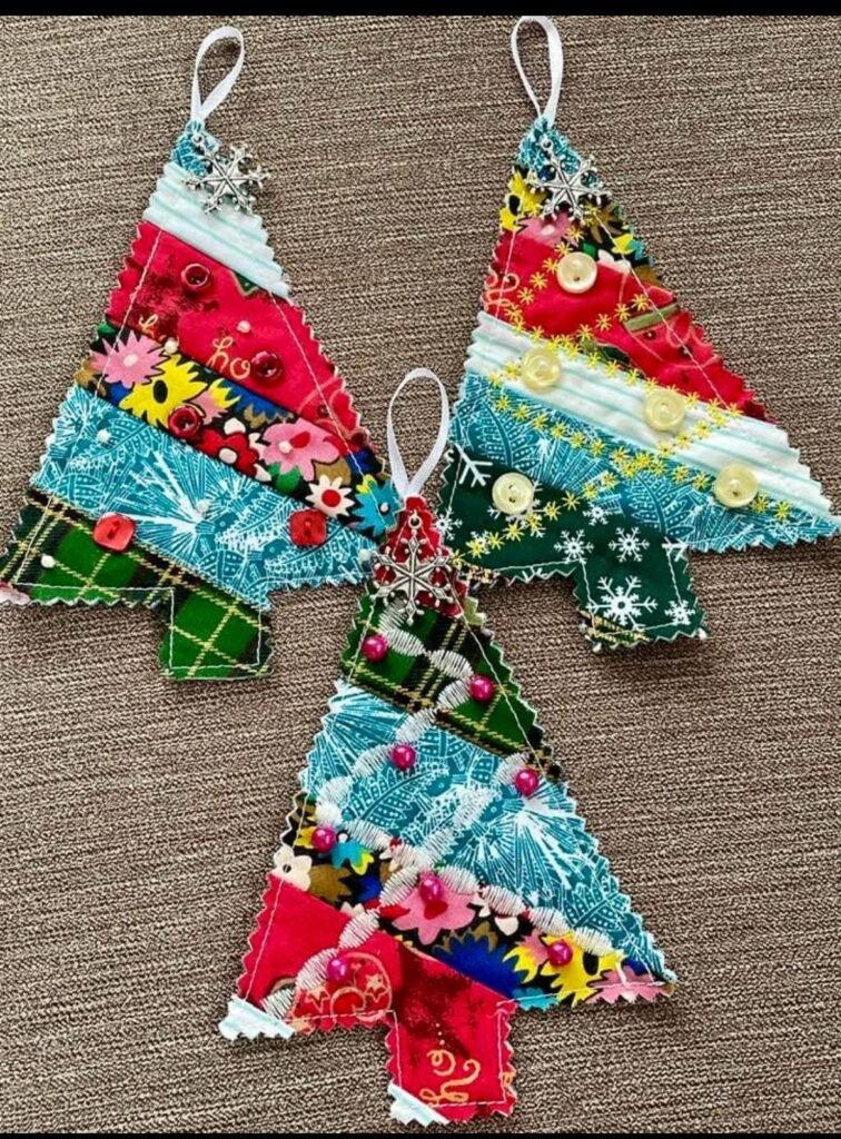 Christmas tree decorations made from fabric scraps – pattern ideas are taking the crafting world by storm—and for good reason.