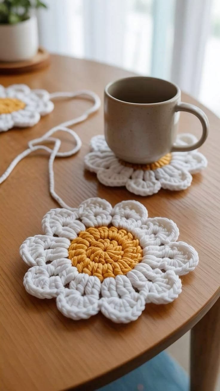 You can also scale this Crochet Daisy Coaster – Tutorial to create larger items. By using a thicker yarn and a larger hook, the same pattern can become a trivet for hot pots or even a decorative place mat. The logic of the stitches remains the same, proving how versatile a simple crochet pattern can be.