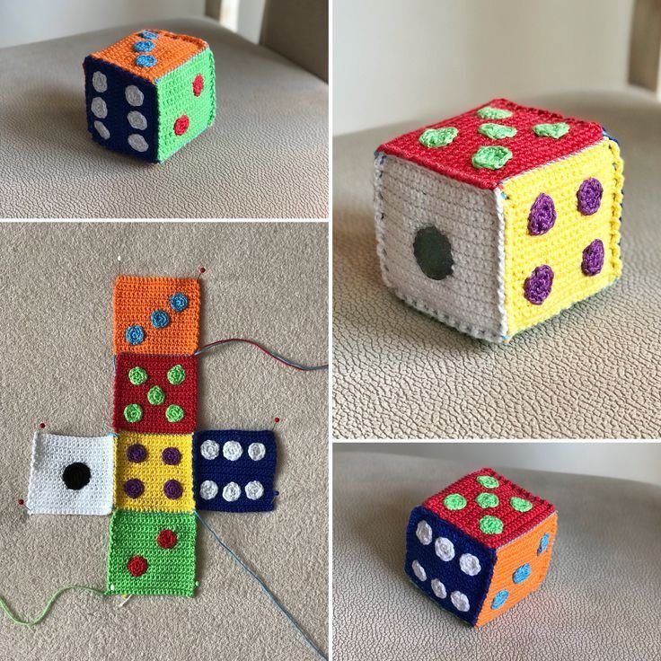 For educational purposes, crochet dice with numbers, letters, or colors instead of traditional dots. This is great for preschool learning games, teaching math, or language basics in a tactile way.
