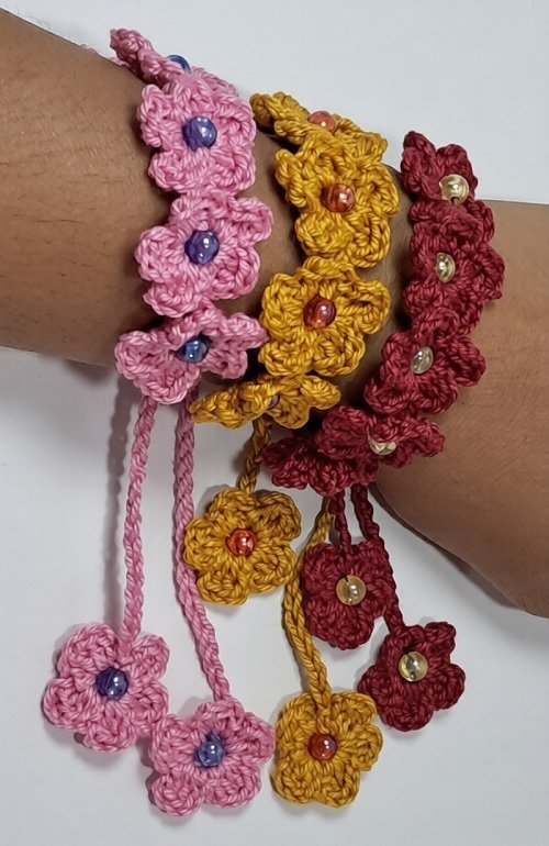 Not at all! This project is considered beginner-friendly. As long as you know the basic stitches like the chain, single crochet, and double crochet, you can successfully create a beautiful crochet flower bracelet.