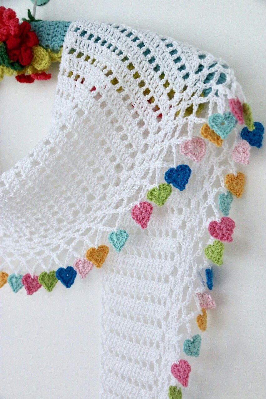 The crocheted scarf with heart- Pattern is a crochet design that incorporates heart-shaped motifs into the structure of a scarf. These hearts can appear as repeating patterns, isolated accents, or textured designs worked directly into the fabric.