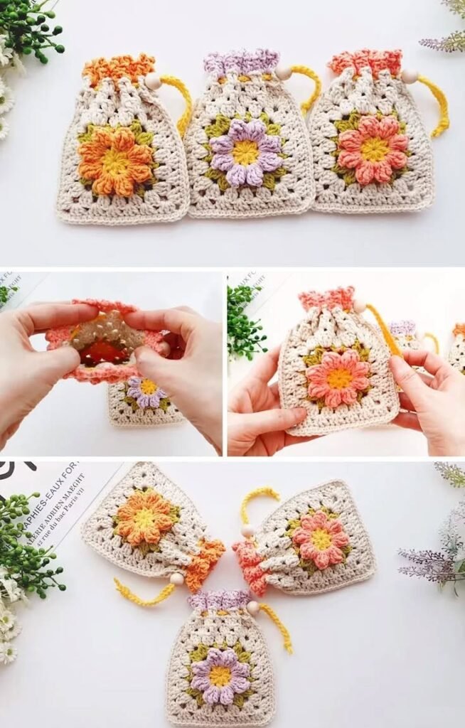 If you want to add a bit of sparkle, consider sewing a small bead or a pearl into the center of each flower. This adds a “jewelry” element to your Mini Crochet Bags with Flowers – Tutorial, making the bag suitable for special occasions like weddings or garden parties. Small additions like these make your crochet work unique and memorable.