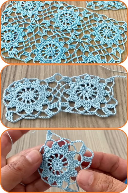 Once the corners are defined, the sides of the square begin to grow. You may encounter various stitch combinations, such as shells, clusters, or openwork sequences. These stitches give each Square crochet for a table runner – Pattern its unique look. Following the pattern closely will help maintain symmetry and alignment.