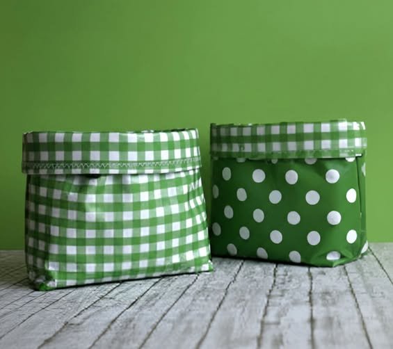 To make a waterproof version, you can use laminated cotton or oilcloth for the lining. This is particularly useful for baskets intended for the bathroom or for holding damp items. Note that these fabrics require a Teflon foot or a bit of tissue paper over the fabric to prevent sticking while sewing.