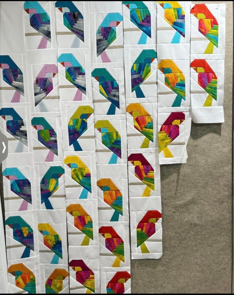 Parakeet Blocks – Pattern is a charming and playful quilting design that captures the beauty and personality of these lively