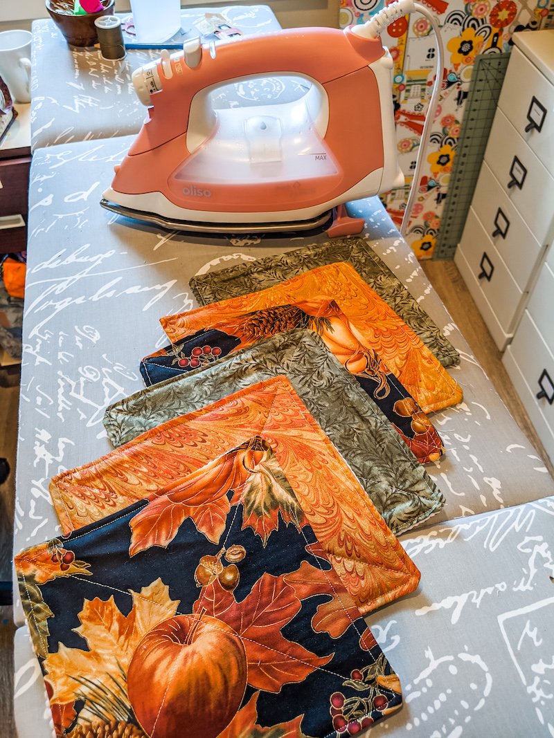 Layer the materials following the pattern instructions. Typically, the non-slip material is placed between two fabric layers to create balance and comfort.