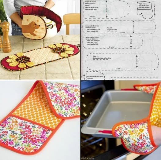 The design usually consists of a rectangular or oval base, layered with insulating materials such as cotton batting or thermal fabric. The hand pockets are sewn onto each end, allowing you to slide your hands in comfortably while keeping them protected. The Double pot rack with hand pockets – Pattern can be customized in size, depending on your needs—some prefer smaller versions for everyday use, while others make larger ones for handling big casserole dishes or baking trays.