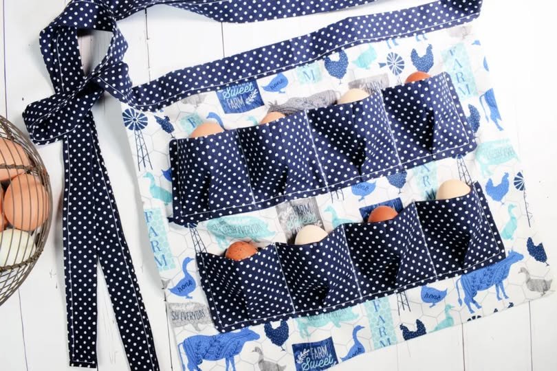 For those who sell their eggs at farmers’ markets, the Fabric Egg Collection Apron – Pattern serves as an excellent piece of “work uniform.” It looks professional and immediately tells customers that your eggs are hand-gathered. You can even add a small zippered pocket to the back of the apron to hold your phone or cash for sales transactions.