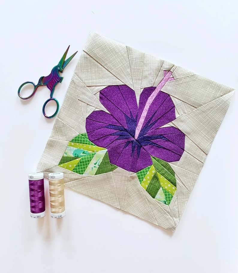 If your Hibiscus Flower Quilt Block – Pattern uses “foundation paper piecing,” you will be sewing directly onto a paper template. This method is incredibly accurate for the sharp points of the leaves and petals found in a Hibiscus Flower Quilt Block. It requires a bit of a learning curve, but the result is a perfectly symmetrical block that looks identical to the one featured on the cover of the pattern booklet.