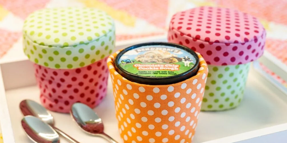 Storing your cozies is easy because they are small and foldable. You can keep a collection of your favorite Ice Cream Pint Cozy – Pattern results in a kitchen drawer or even hang them on a hook near your freezer, so they are always within reach when the cravings strike.
