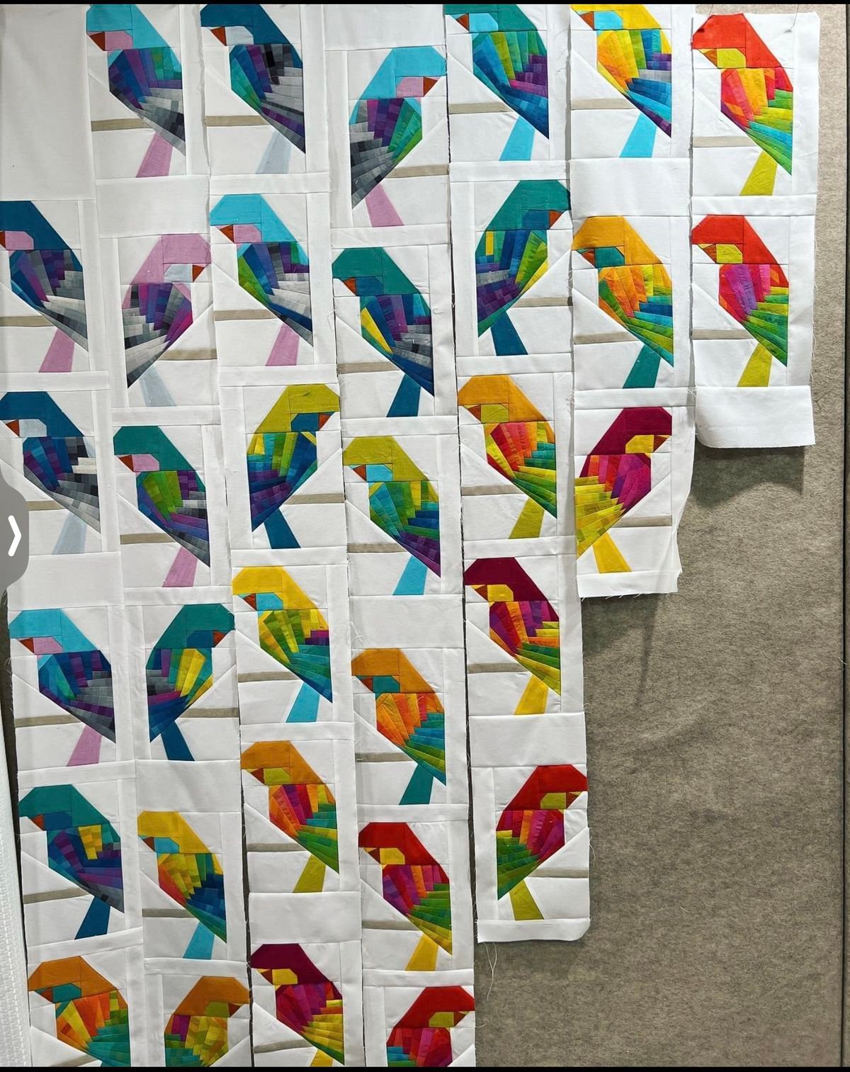 Many quilters opt for a modular approach, creating individual parakeet blocks that can be arranged in repeating patterns for a larger quilt.