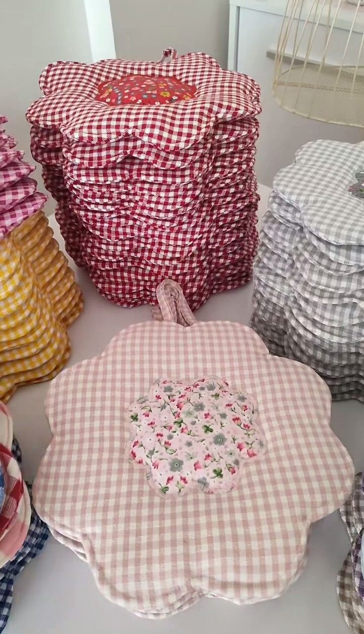 The structure is simple but impactful. Many patterns use a circular base where smaller fabric pieces are stitched together in repeating shapes, creating uniformity and balance.