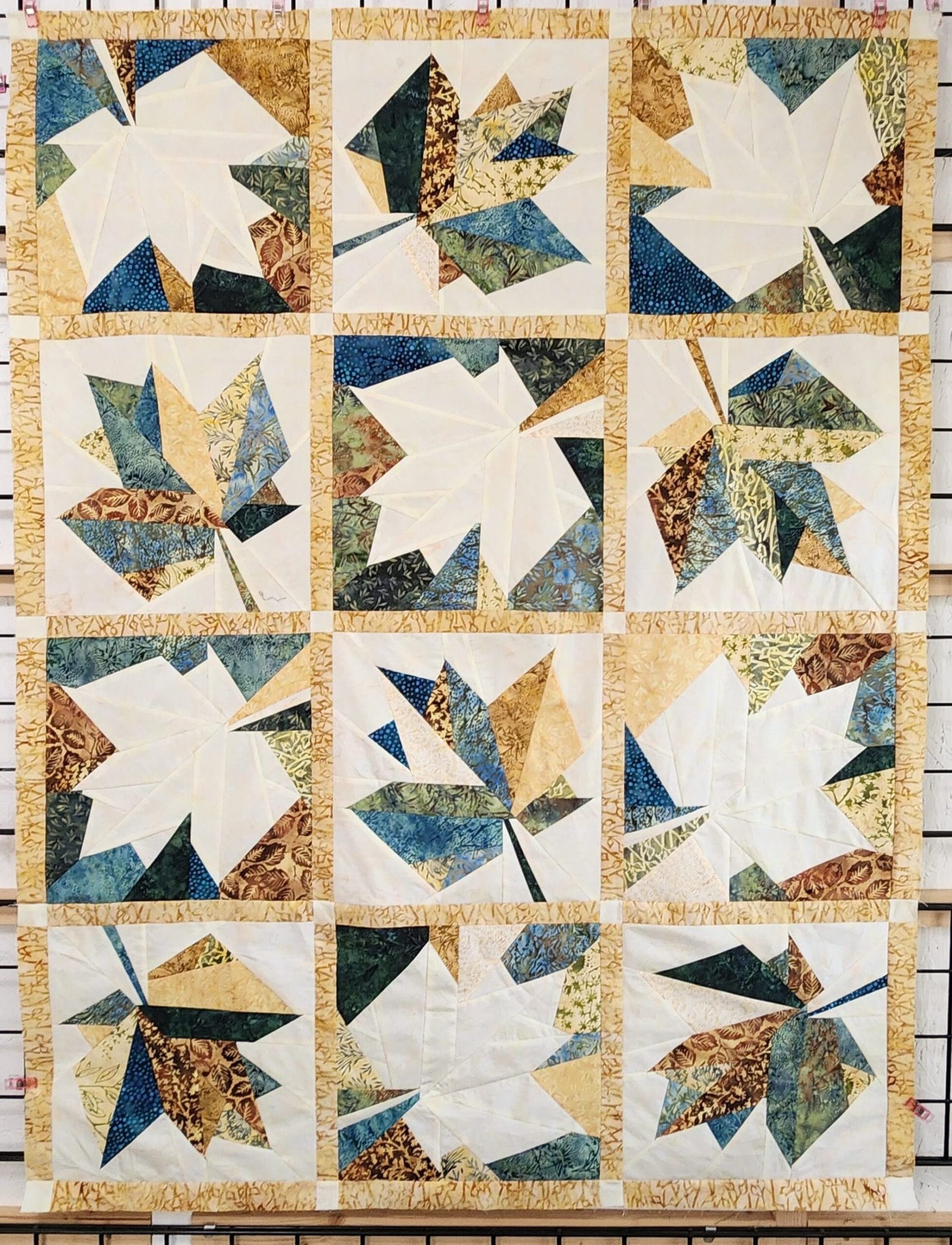 A Patchwork LEAF QUILT – Pattern typically includes templates or measurements for creating the leaf shapes. These shapes are usually composed of triangles, rectangles, or curved pieces depending on the style of the pattern. Understanding how the leaf block is constructed is the first step to a successful quilt.