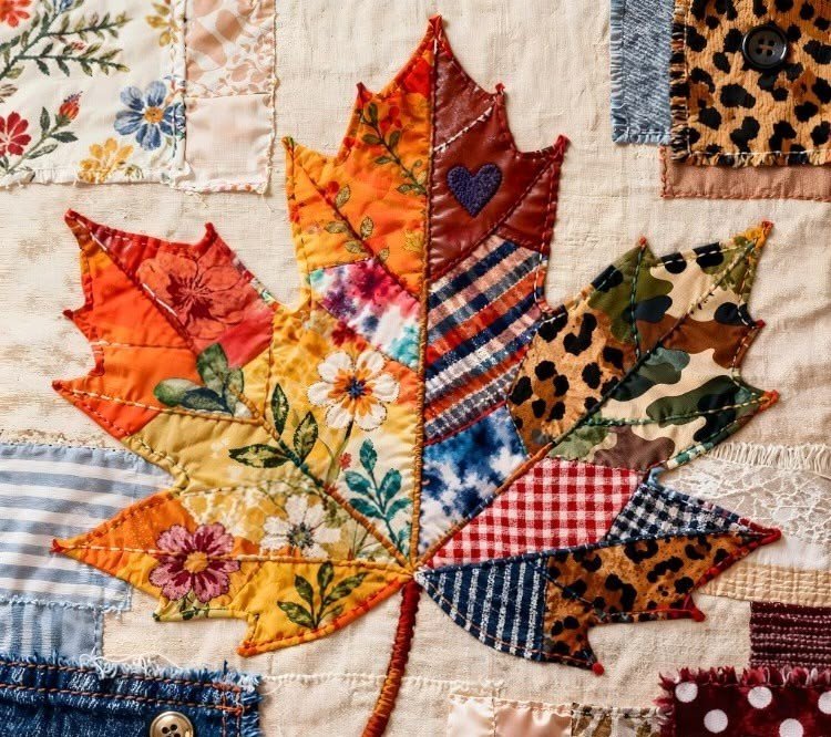 The Patchwork Maple Leaf also works beautifully in a monochrome palette. Imagine a leaf made of various shades of blue or grey for a sophisticated, wintry feel. This Patchwork Maple Leaf – Tutorial doesn’t have to be restricted to fall colors; it’s a versatile pattern that looks great in bright florals or even patriotic red, white, and blue.