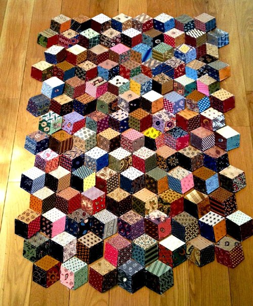 Repeat the process to make multiple blocks. Arrange them on a flat surface to see how they fit together. The cubes should appear to “tumble” across the quilt as the pattern grows.