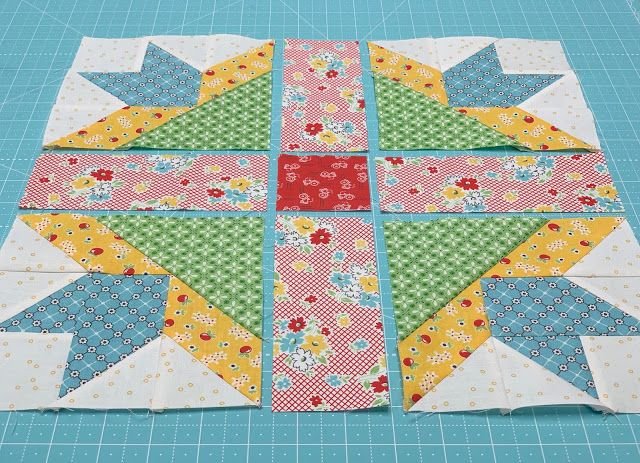 Once all blocks are finished, they are assembled into rows and then joined to form the quilt top, bringing the Vintage Block Along Quilt – Pattern to life.